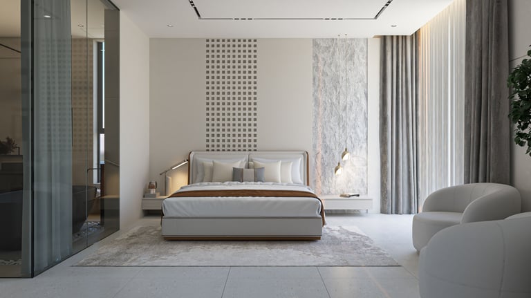 A serene and elegant space designed for comfort and relaxation, featuring soft tones, modern finishes, and natural light that creates a peaceful retreat.